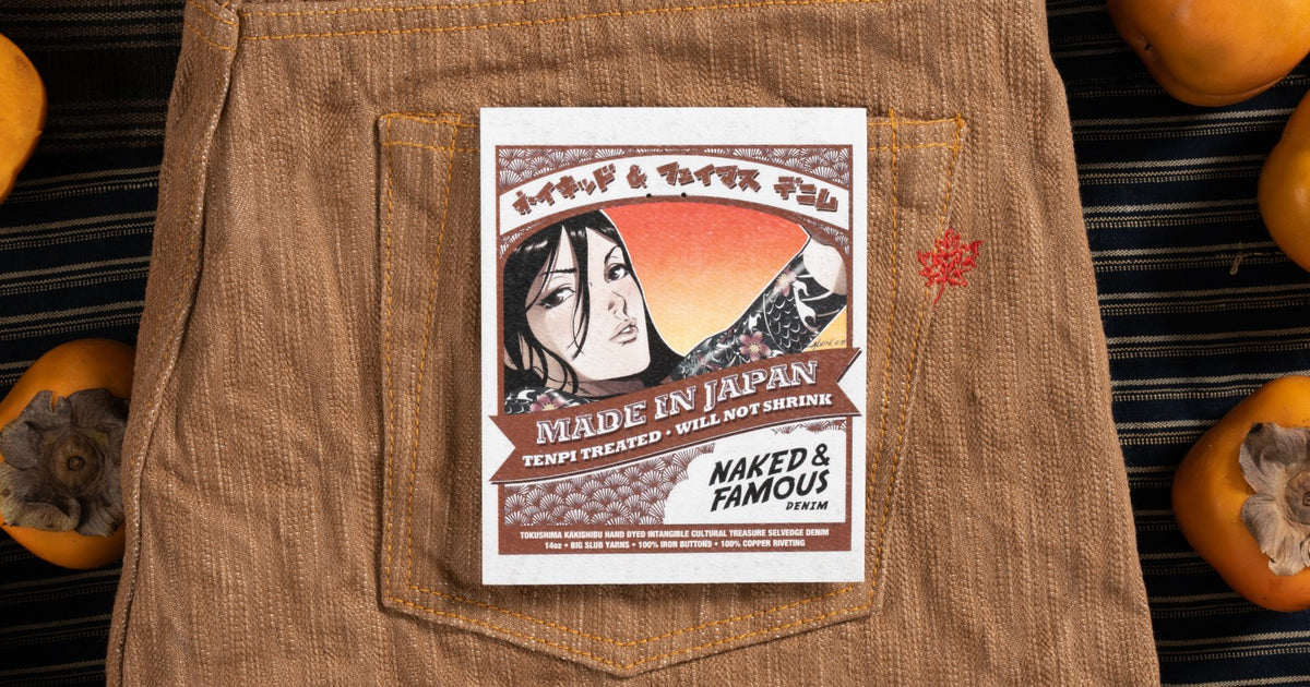 When it comes to denim, nothing quite compares to the richness of color and depth that comes from the ancient Japanese dyeing technique known as Kakishibu or persimmon dyeing. For the Naked & Famous Denim Made in Japan 11, we take it one step further as they are dyed by hand in the Tokushima Prefecture of Japan, a region that is renowned for its mastery of the Kakishibu dyeing technique.