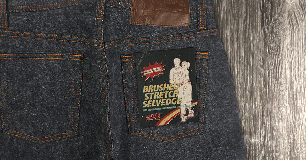 BRUSHED STRETCH SELVEDGE13oz dark indigo Japanese selvedge denim with a brushed exterior, contrast stitching, and 2% stretch. Completed with a soft lambskin leather patch. |