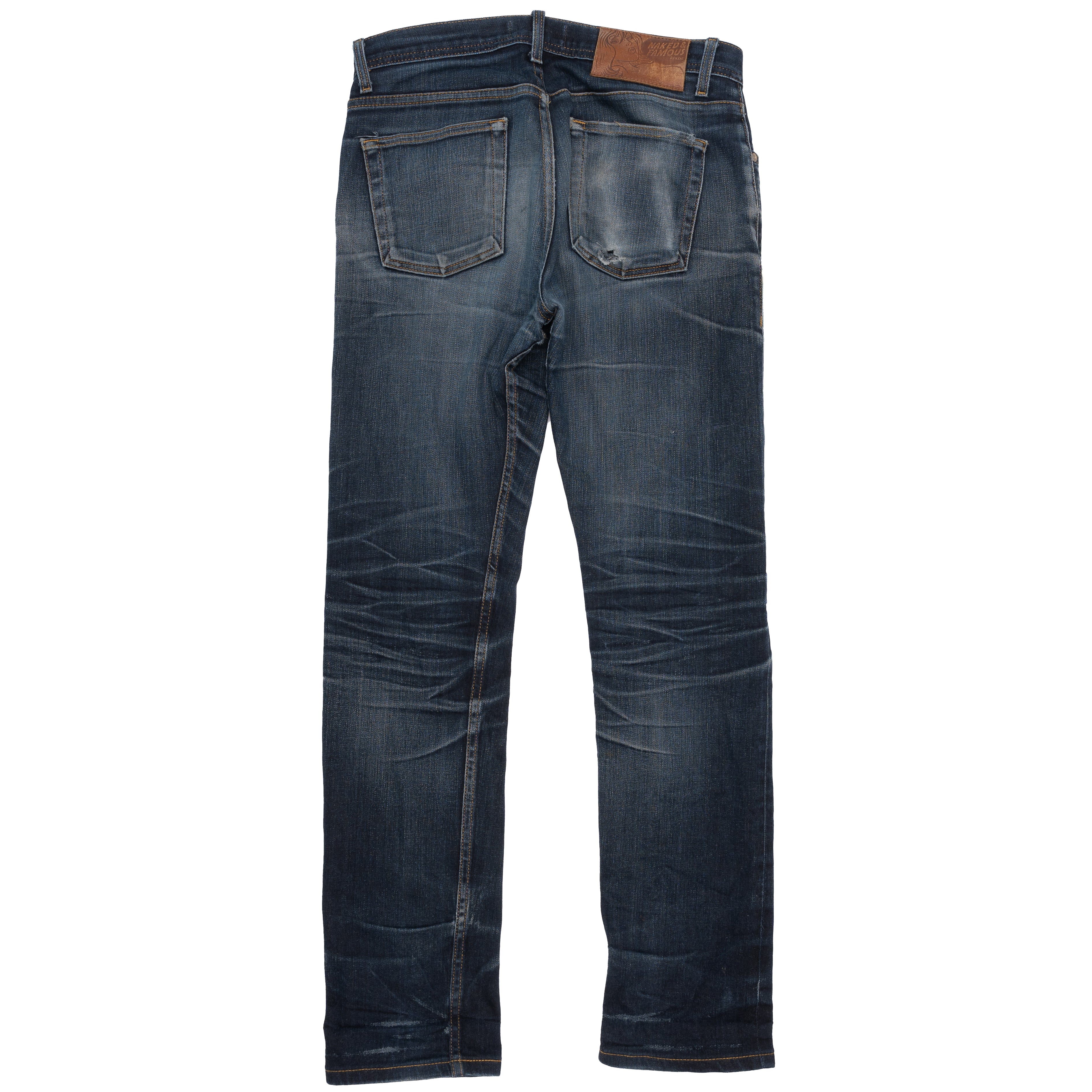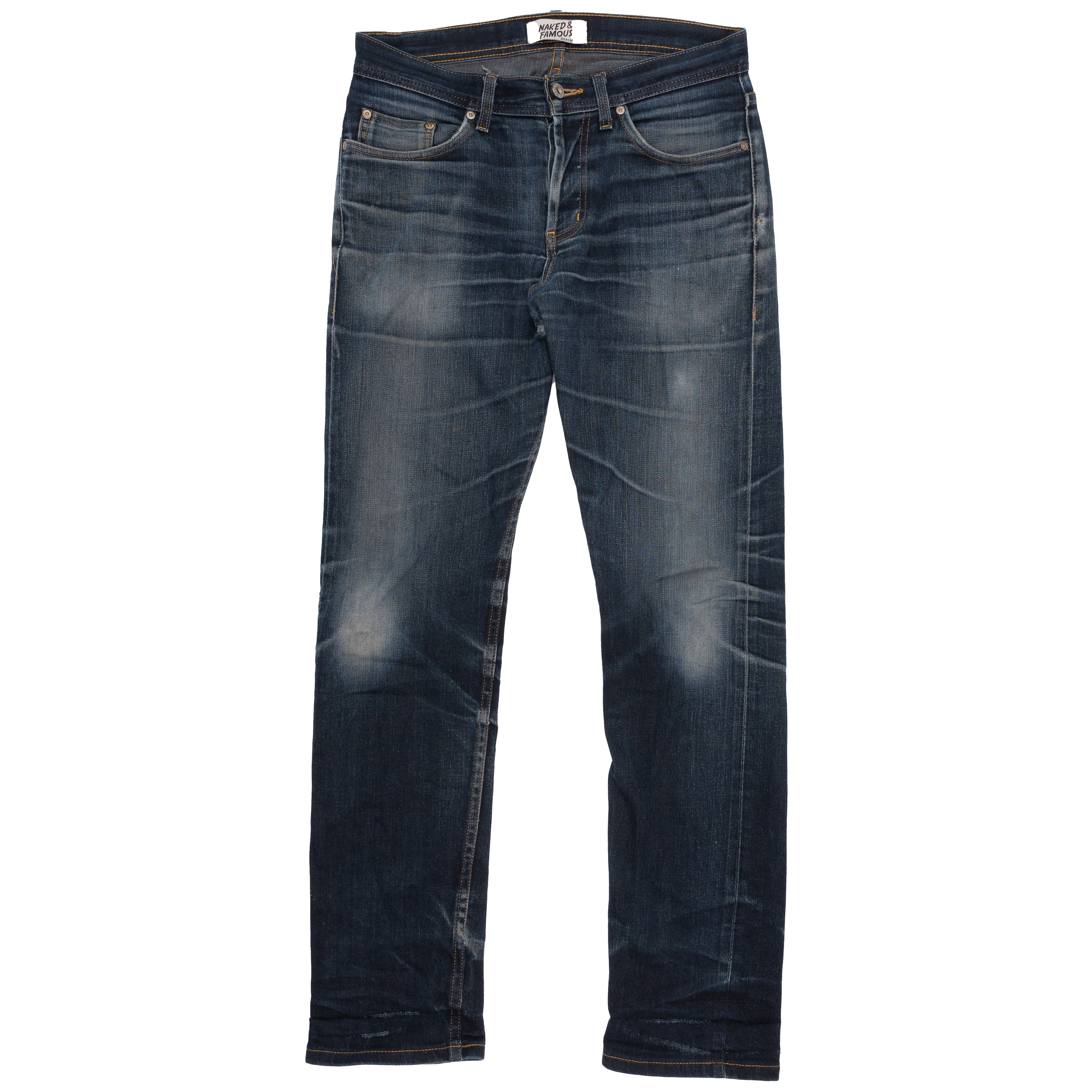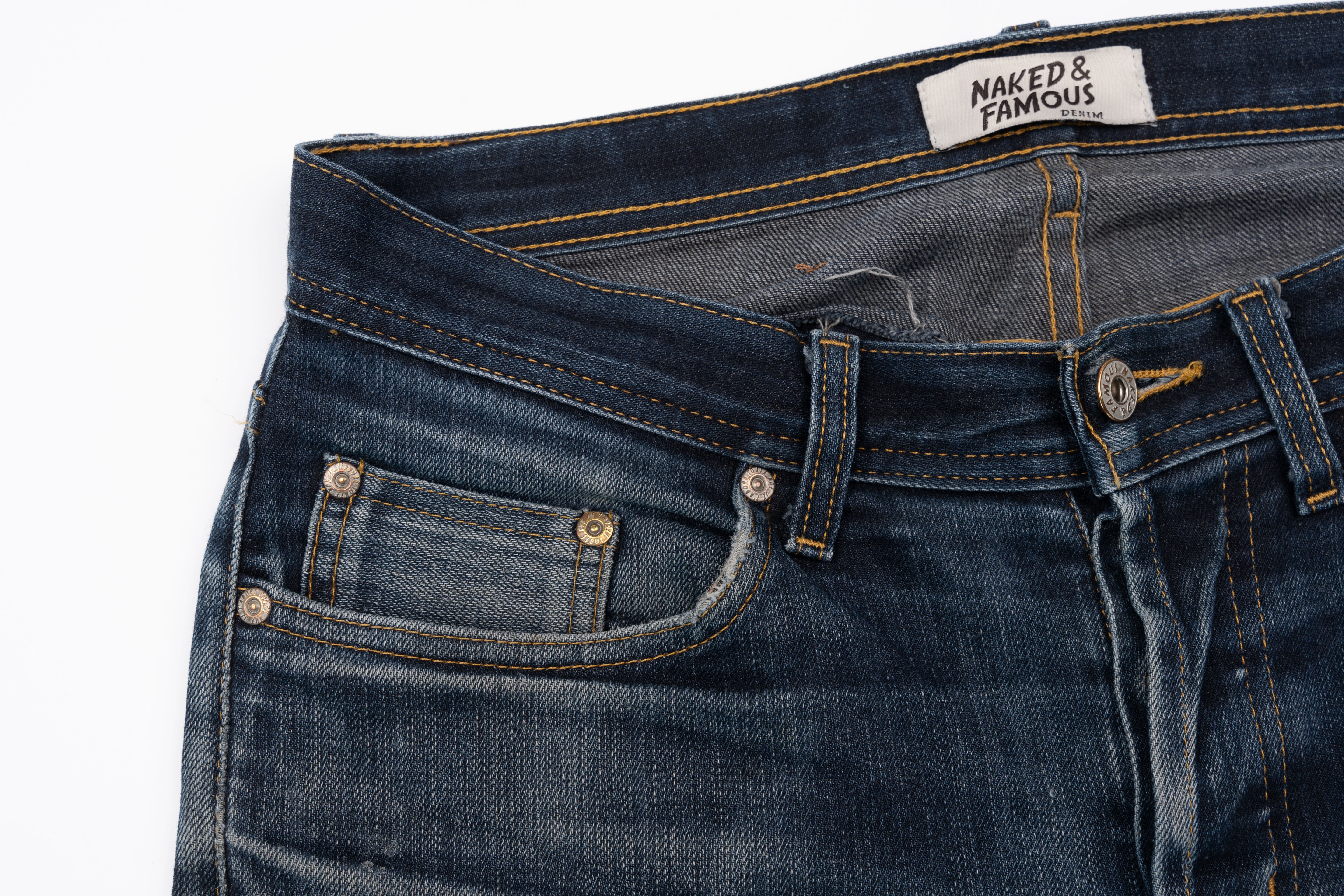 See the dramatic transformation of how the Deep Indigo Stretch selvedge can fade over time with extended period of wear and wash.
