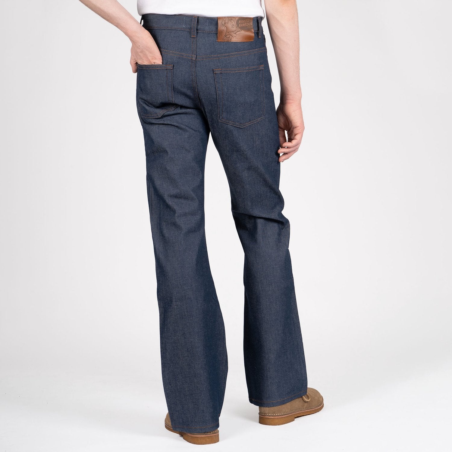 The Groovy Guy is a bootcut fit; high rise, standard thigh and wide leg opening from the knee to hem. Easy, effortless, and a nod to vintage proportions.