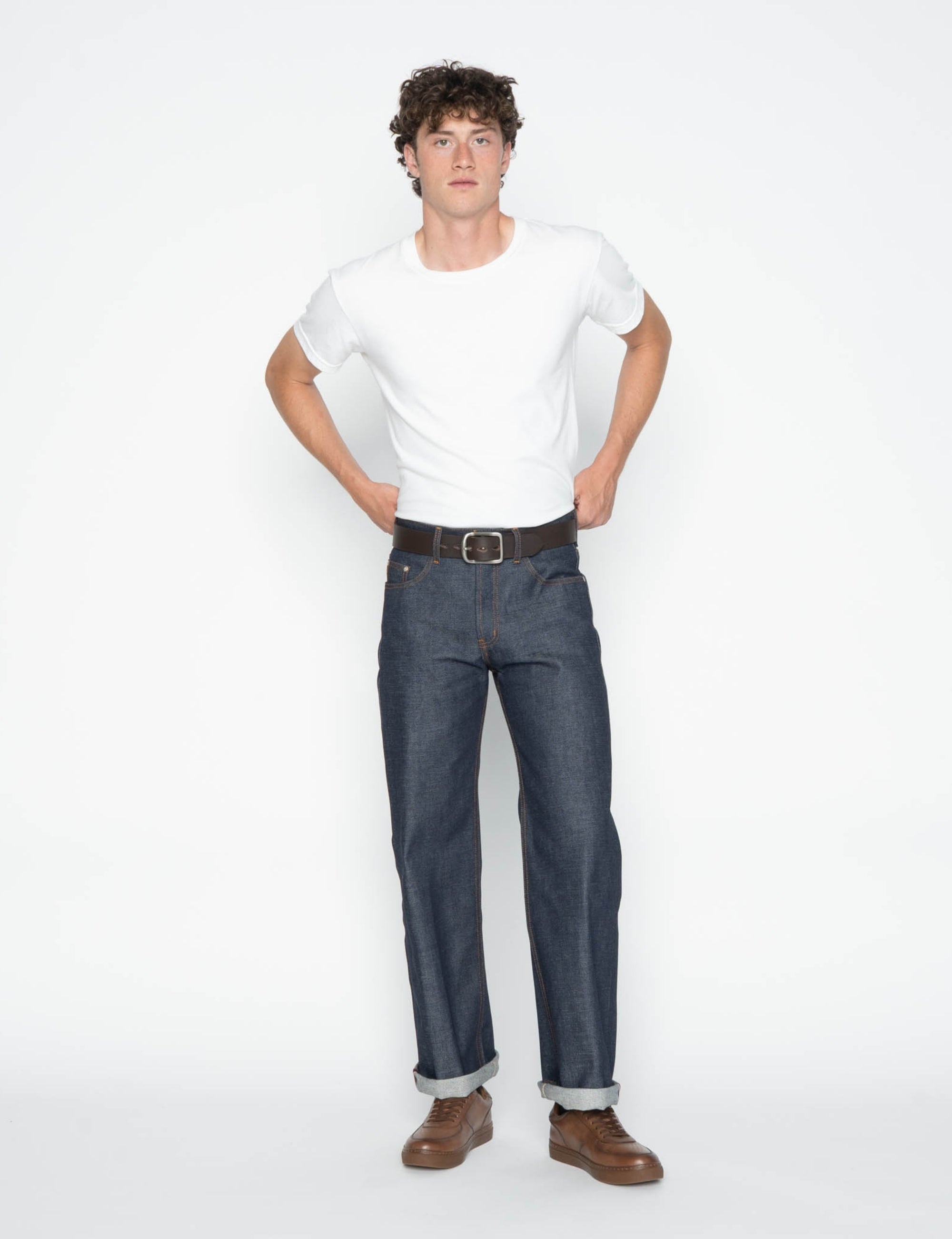 Straight leg fit with a regular rise along with extra room in the seat and thigh that falls straight from knee to hem.