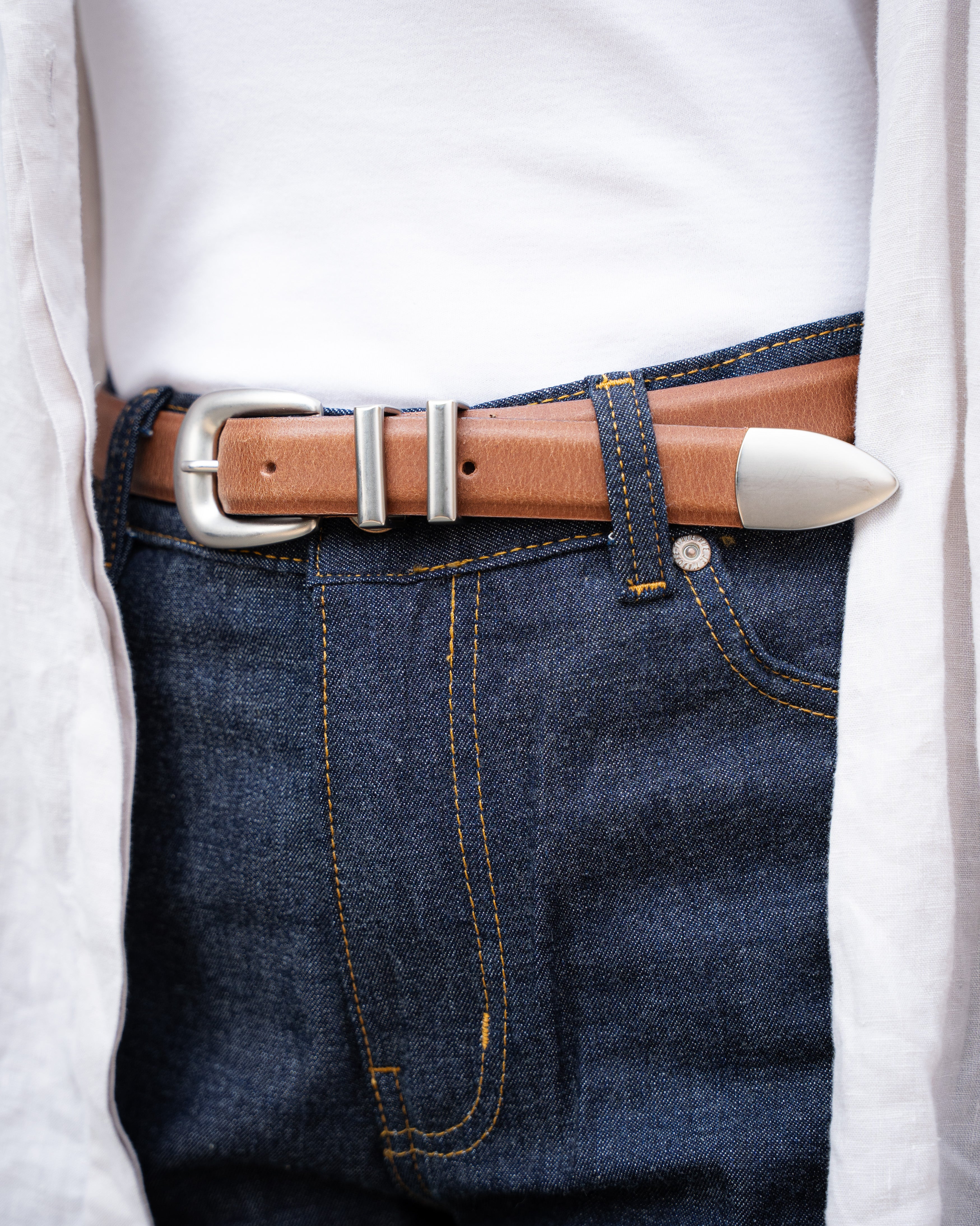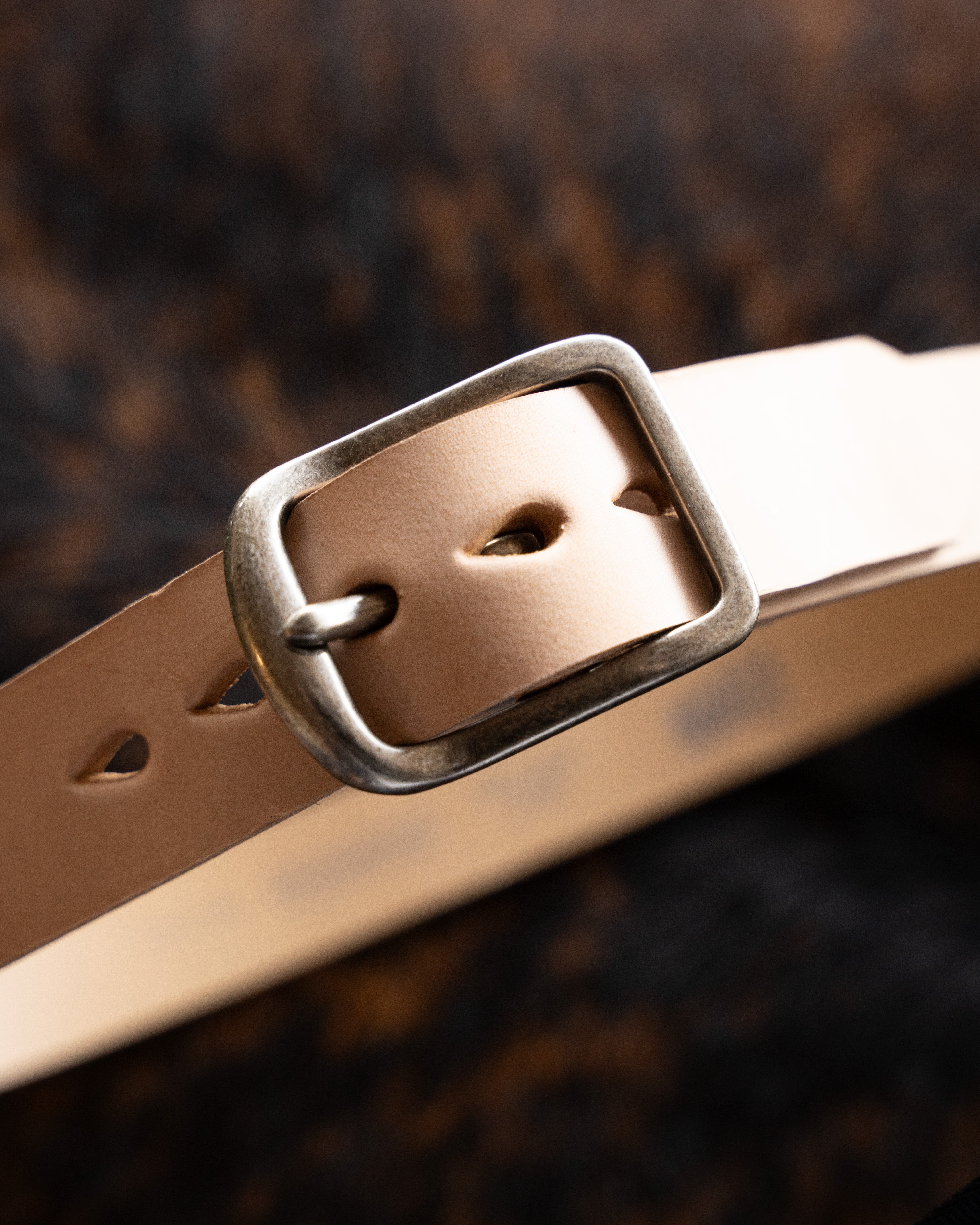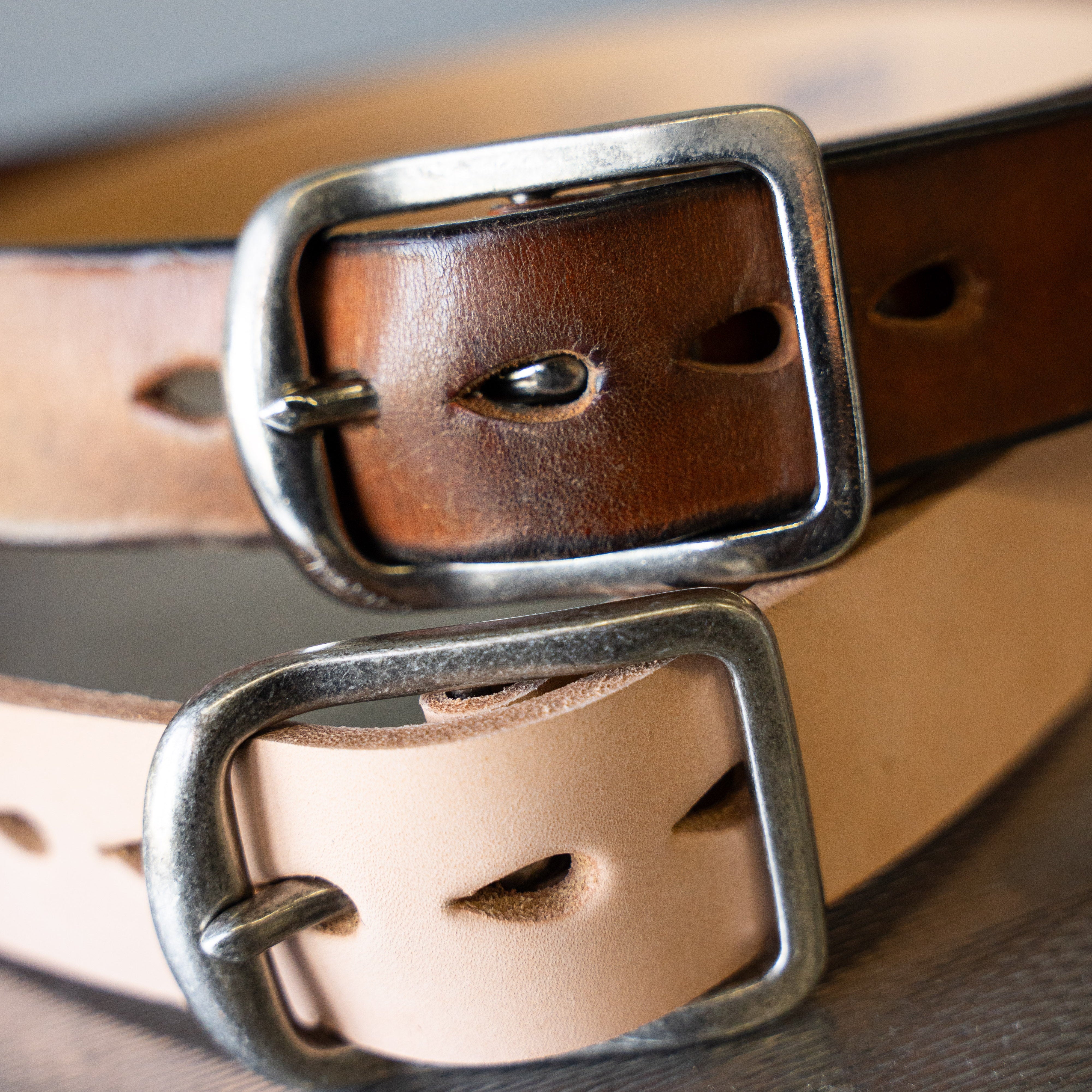 Fabriquée au Canada à partir de cuir bovin pleine fleur tanné naturel de 1,5 po, notre ceinture super épaisse au tannage végétal est conçue pour durer, développant une patine brun foncé au fil du temps et dotée d'une boucle brossée robuste et d'encoches en forme de larme pour des années d'usure.