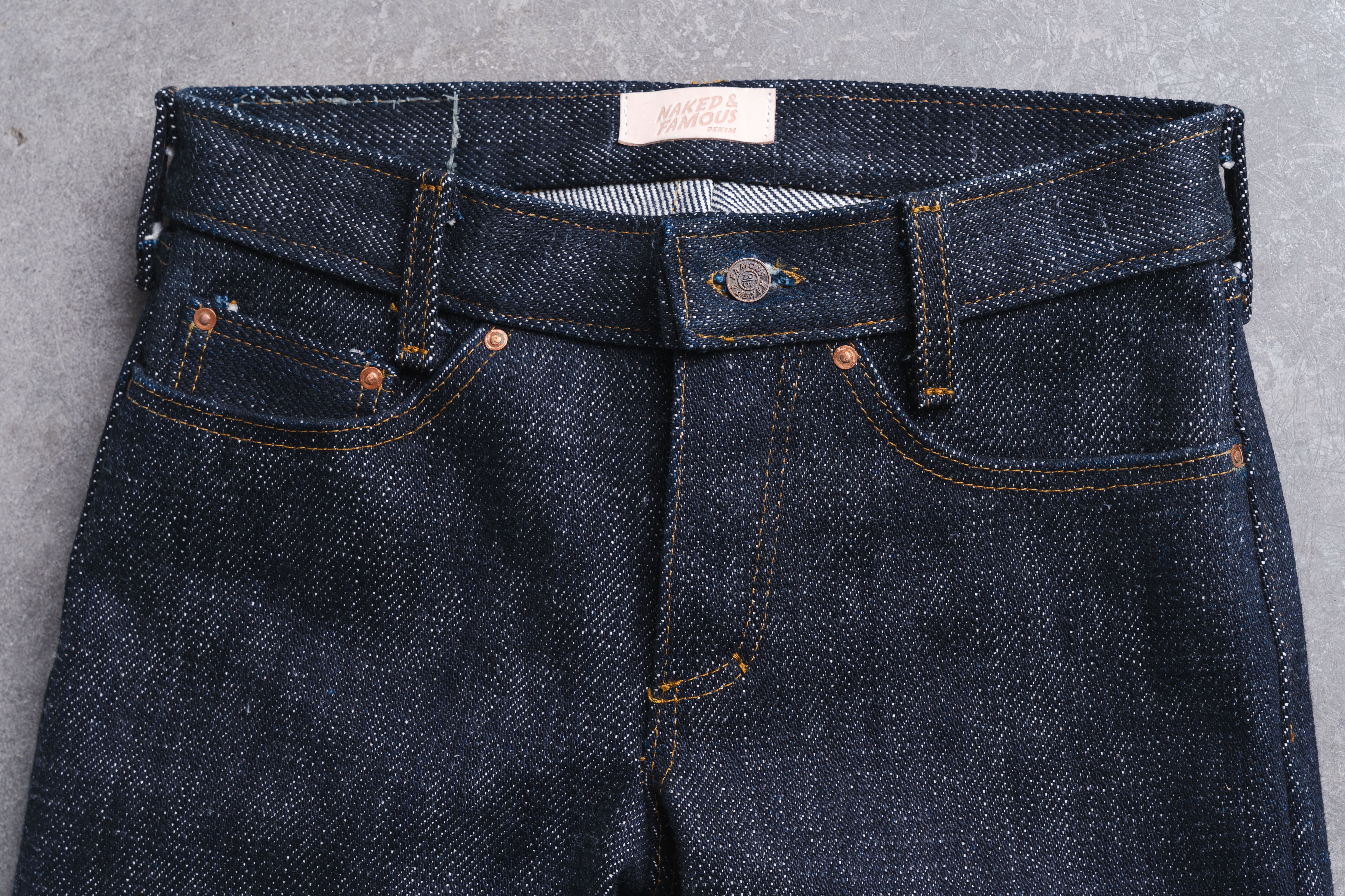 Nous passons en revue les détails de ce jean Elephant 5 Selvedge en denim Naked & Famous très délavé.