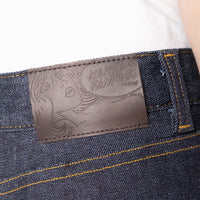 The Blue Comfort is a 14oz Japanese power stretch denim with a classic raw denim look and feel. This denim is designed to flex and move while retaining its shape wear after wear. The stretch fibers are contained on the interior weft which allows for excellent horizontal movement, while the indigo rope dyed exterior warp give this denim remarkable fading potential.