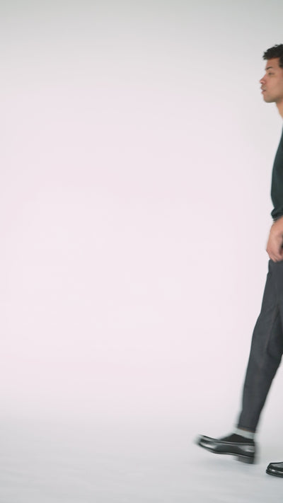 The Nightshade Stretch Selvedge is a 12oz Japanese selvedge denim with 2% stretch for added comfort. The color of the denim is created with the addition of a black dye to the indigo, the combination creates a rich indigo tone that is nearly black. Other details include contrast stitching, brown leather patch, red selvedge ID, silver metallic buttons and rivets. The Easy Guy is a relaxed tapered fit; regular rise, fuller in the seat and thigh with a sharp taper from knee to hem.