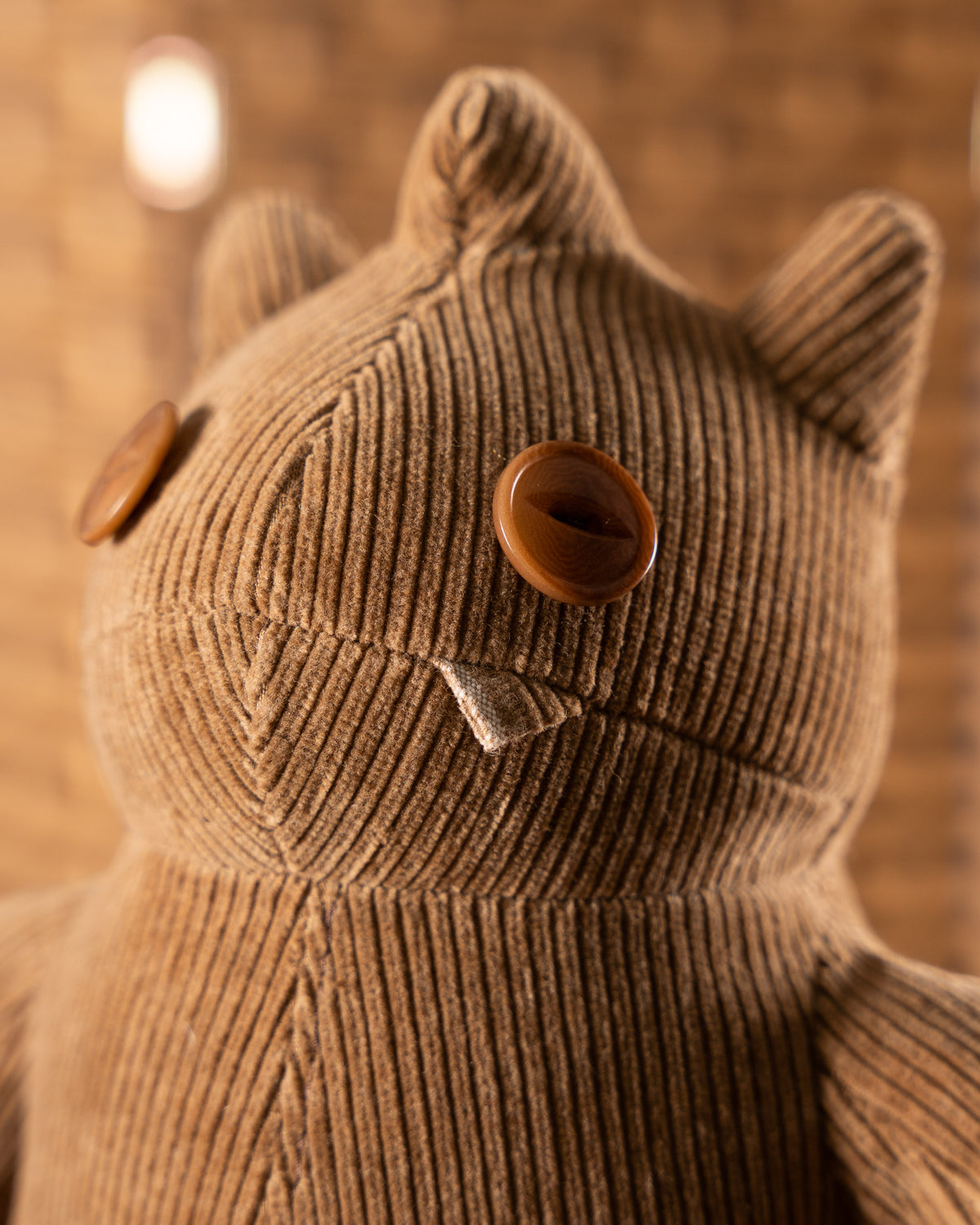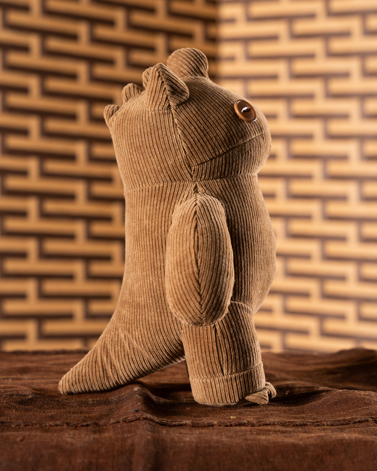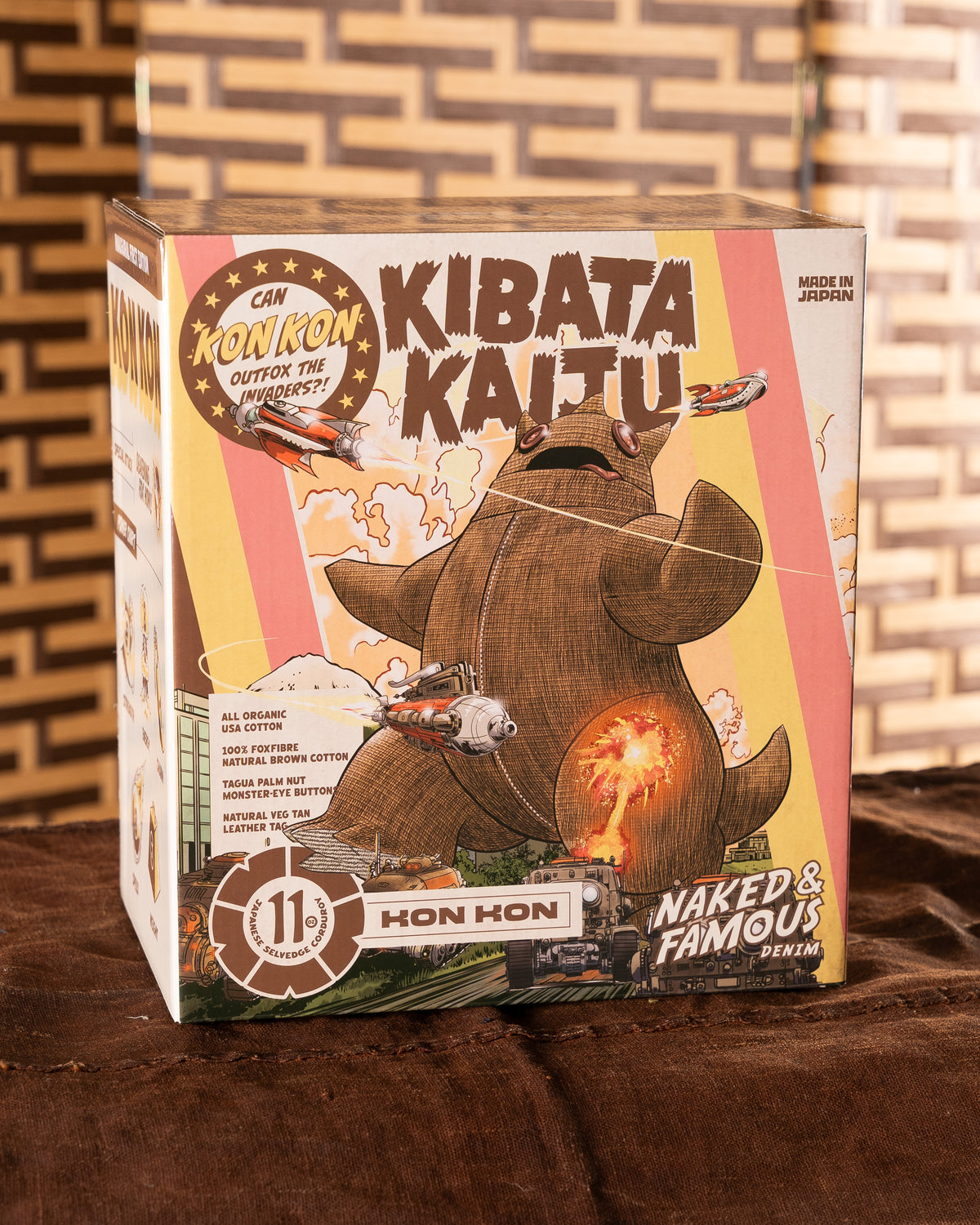 Kon Kon is constructed from naturally colored brown FoxFibre® Japanese selvedge corduroy, showing the raw brown tone of the fiber itself without the use of dyes. The fabric’s color and texture are inherent to the cotton and designed to develop depth and patina through handling, exposure, and hugging over time.