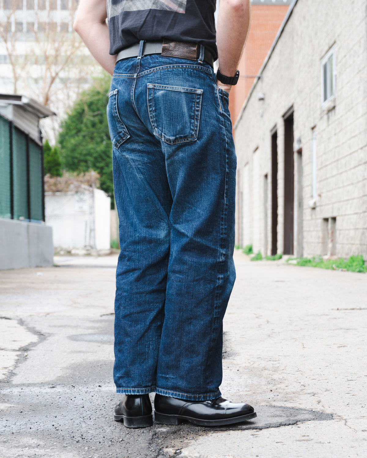 The Left Hand Twill Selvedge is a 13.75oz indigo rope dyed Japanese selvedge denim, woven on vintage shuttle looms in a left hand twill construction. When worn over time, this construction will provide a softer feeling denim and will emphasize vertical fading. Other details include contrast stitching, full grain brown leather patch, white selvedge ID, silver metallic buttons and rivets. The Strong Guy is a relaxed straight fit; high rise, fuller in the seat and thigh that falls to a wide leg opening.