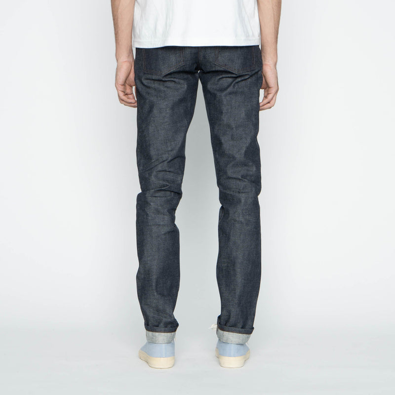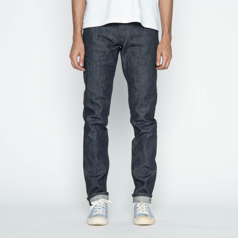 The Super Guy is a skinny fit with a medium rise, a slim top block, and a taper from knee to hem.