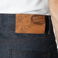 The Forbidden Fruit Selvedge is a 12.5oz rope-dyed Japanese denim made from organic cotton, defined by an earthy brown selvedge edge. It’s finished with a patch crafted from recycled apple leather made by drying and grinding leftover apple skins, then binding them into a leather-like material that echoes the bark of the tree that started it all.