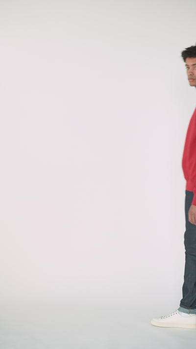 The Indigo Power Stretch is a 12oz Japanese power stretch denim, woven in a right hand twill construction. The denim is dyed indigo on the warp and white on the weft for a classic look. The dye is designed to fade with prolonged wear. The denim is made with 5% stretch for increased comfort, and has an incredible stretch recovery performance allowing the jeans to snap back to shape wear after wear. Other details include contrast stitching, full grain brown leather patch, silver metallic waist button and rivets. The Super Guy is a slim tapered fit; medium rise, slim thigh and taper from the knee to hem.